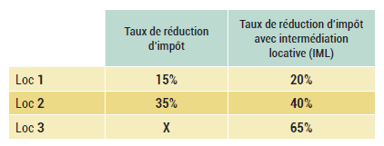 En contrepartie d’un niveau de loyer inférieur au prix du marché, vous bénéficiez d’une réduction d’impôt sur les revenus locatifs comprise entre 15 et 65% avec le dispositif Loc’Avantages de l’Anah (simulation de projet) ; plus le niveau de loyer est inférieur au prix du marché, plus la réduction fiscale est importante
